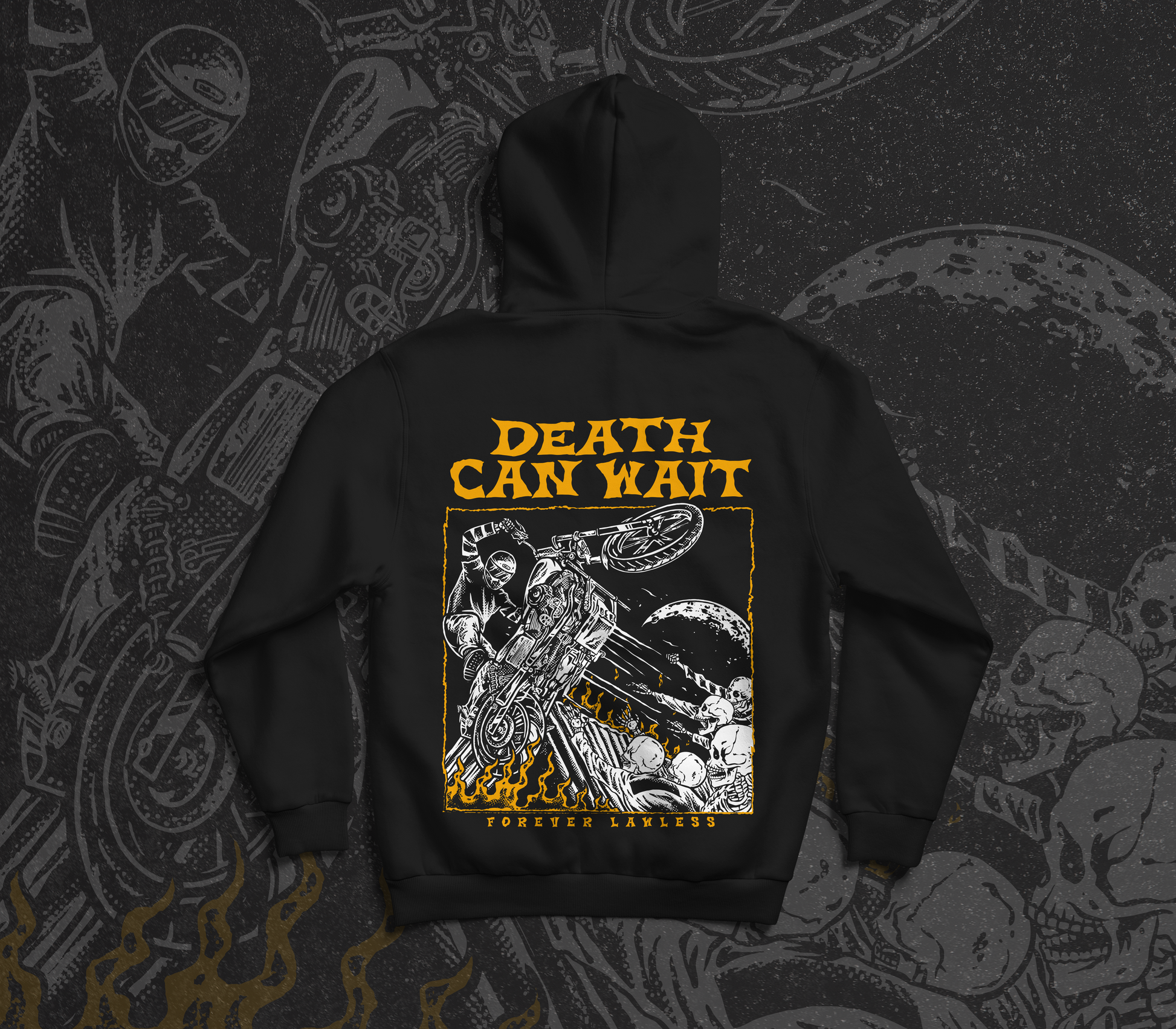 Embrace the bold with our Death Can Wait Hoodie. This design makes a statement that nothing stands in your way—not even death. Crafted for comfort and attitude, it’s perfect for those who live fearlessly and defiant. Printed on premium Champion hoodies.